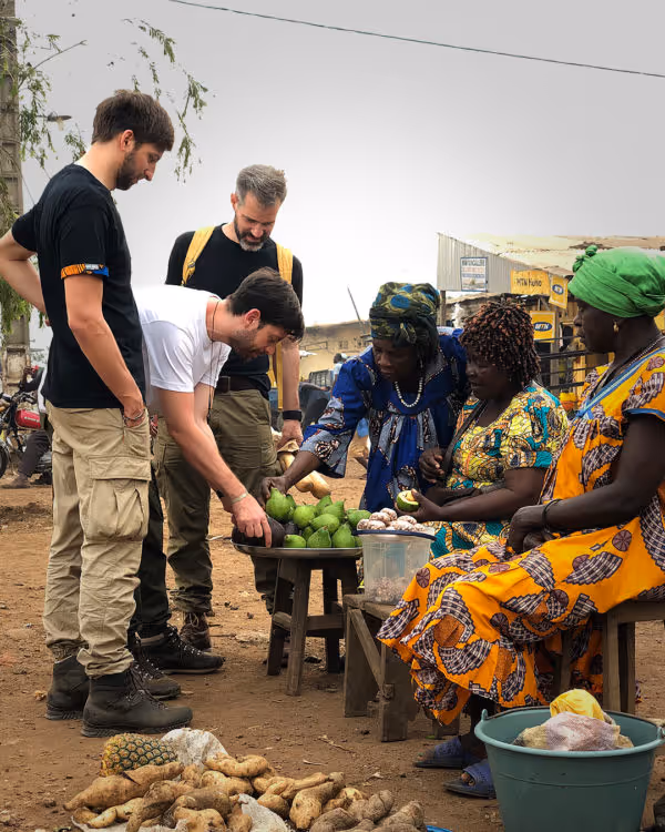 Nach einigen Stunden Fahrt, vorbei an Blechhütten, Shops in allen Farben und tausenden von Verkehrsteilnehmer*innen, plagt uns der Hunger. Am Strassenrand sehen wir drei Frauen, welche frische Früchte und frisches Gemüse verkaufen. Die Frauen sind uns sofort ins Auge gestochen. Ihre traditionelle Kleidung mit den knalligen Farben versetzten uns direkt in eine tolle Laune. Alle drei strahlen viel Charisma, Stolz und Stärke aus. Mit ihren lauten und kräftigen Stimmen rufen sie uns herbei und schneiden uns mit einem Messer ein paar Stücke aus einer Avocado. “Mhm… Einfach nicht vergleichbar mit den Avocados in der Schweiz.” Höchstwahrscheinlich zahlen wir zu viel, aber das Scherzen mit ihnen und die fantastische Aura der drei Frauen sind es uns wert! Die Mimik von einer der drei Frauen verändert sich plötzlich. Als ich bezahlt habe, erzählt sie uns, dass sie das Geld brauchen würde, um Grundnahrungsmittel und Medikamente für ihre Familie zu kaufen. Uns wird mit einem Schlag wieder einmal bewusst, dass viele Menschen ihre Grundbedürfnisse nicht so selbstverständlich decken können wie wir. Wir müssen weiterziehen, doch in Gedanken sind wir noch eine Weile bei den drei “Avocadoladies.”